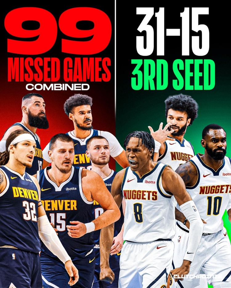 中超-4主力+瓦兰合计缺席99场!掘金依旧31胜15负排西部第三!